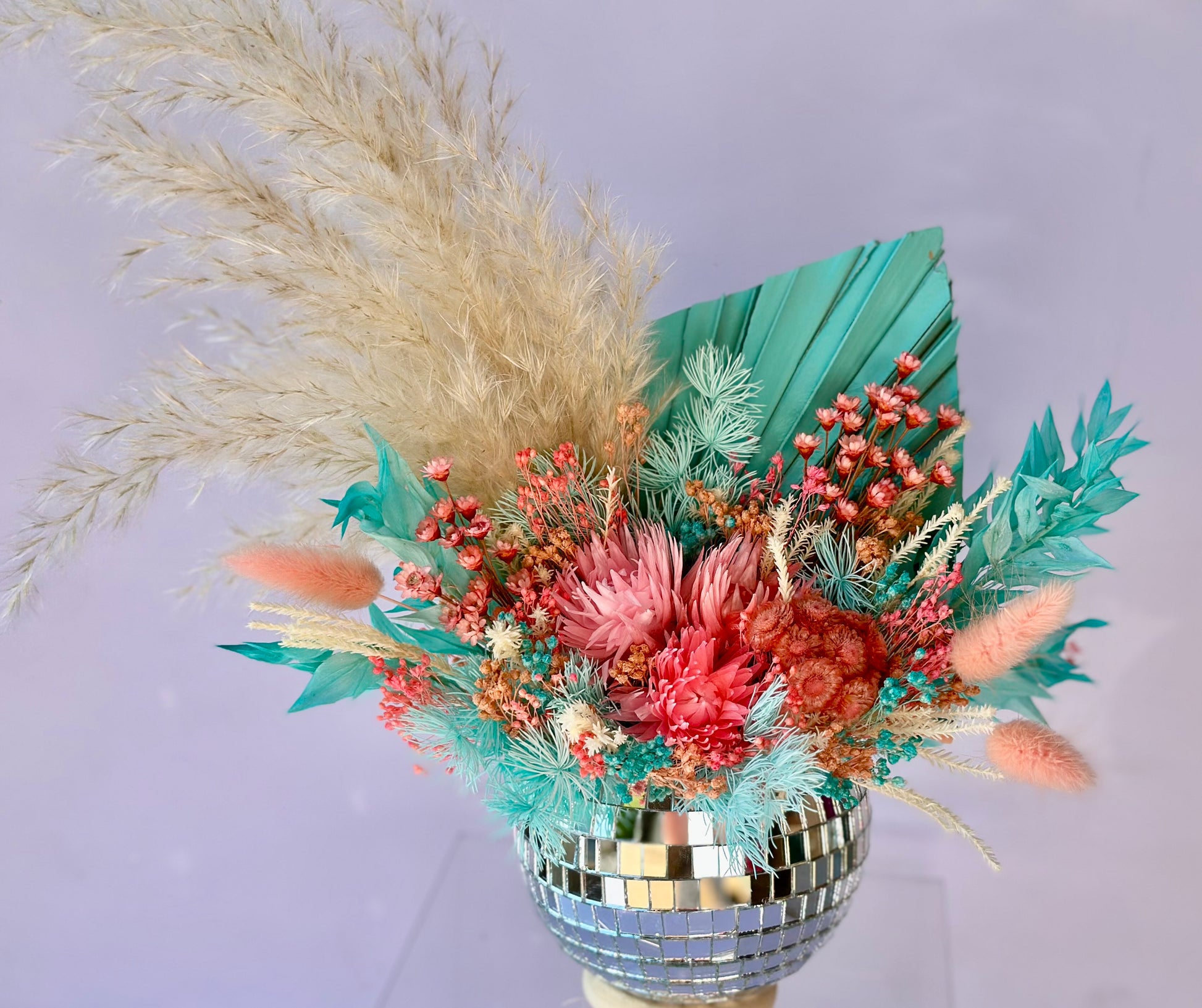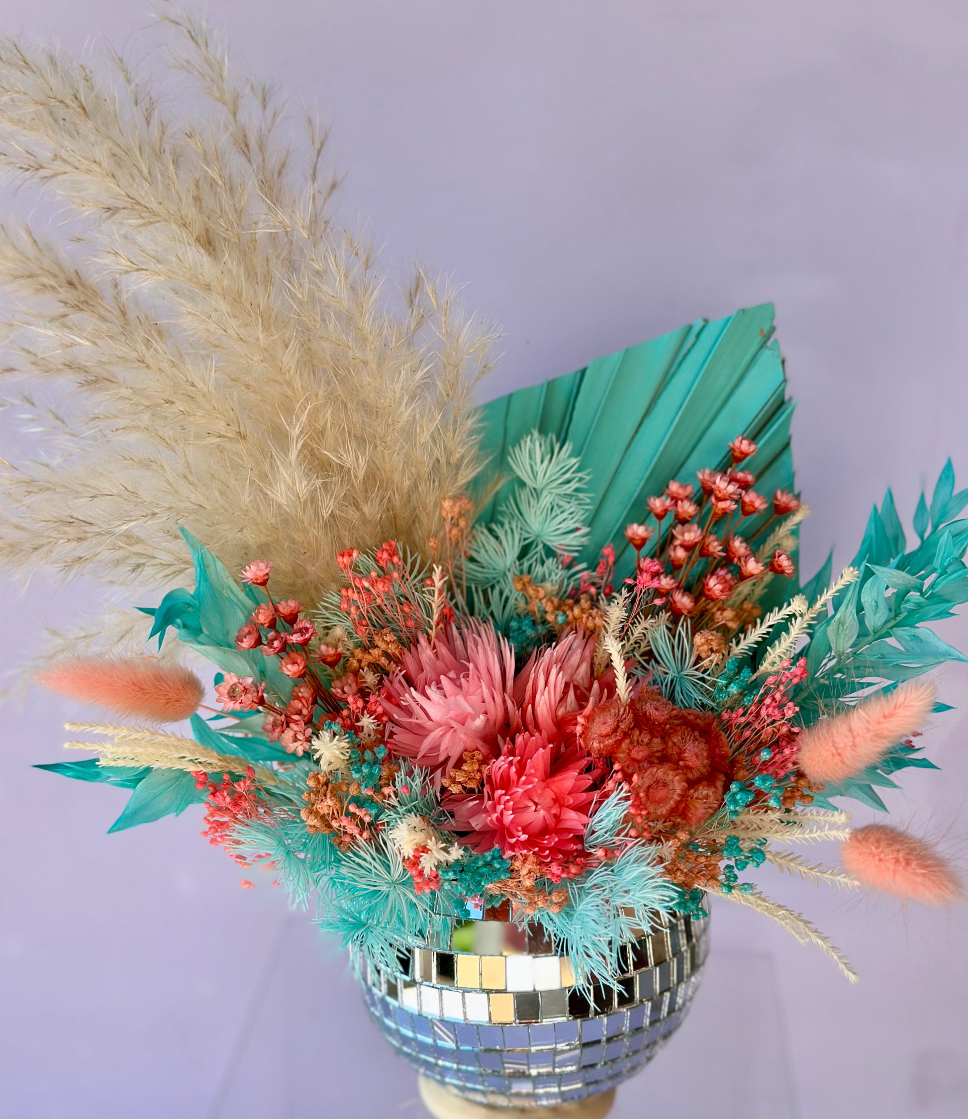 Inspired by Sierra Ferrell's new "Trail of Flowers" album - bright corals, peaches, and turquoise in a sparkly 4" disco ball.